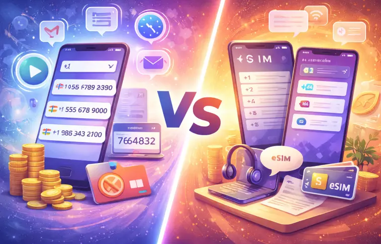While virtual SIMs give you more control and reliability, they cost more and require setup through specific apps or eSIM-compatible devices. They are not ideal for quick OTPs or short-term testing.