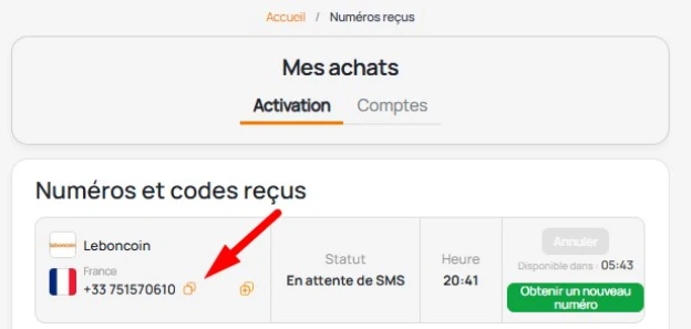 Lors de l’inscription ou d’une étape de sécurité, Leboncoin envoie un code par SMS. Avec un numéro virtuel, le message est reçu directement dans votre espace personnel en ligne. Il suffit ensuite de copier le code et de confirmer l’activation.